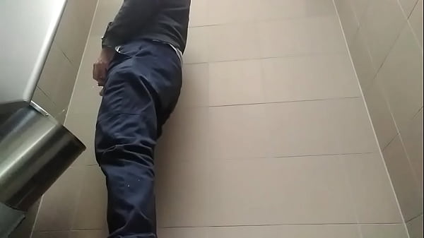 A busy guy with an uncut dick peeing in a public toilet